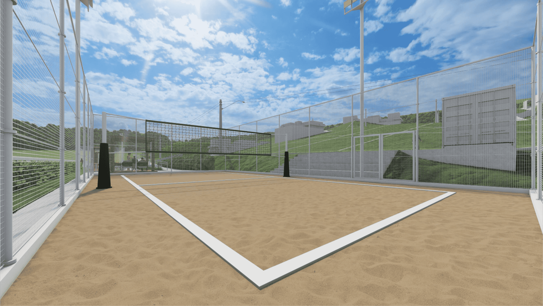 Auge do entretenimento esportivo em quadra de areia com arquibancada!