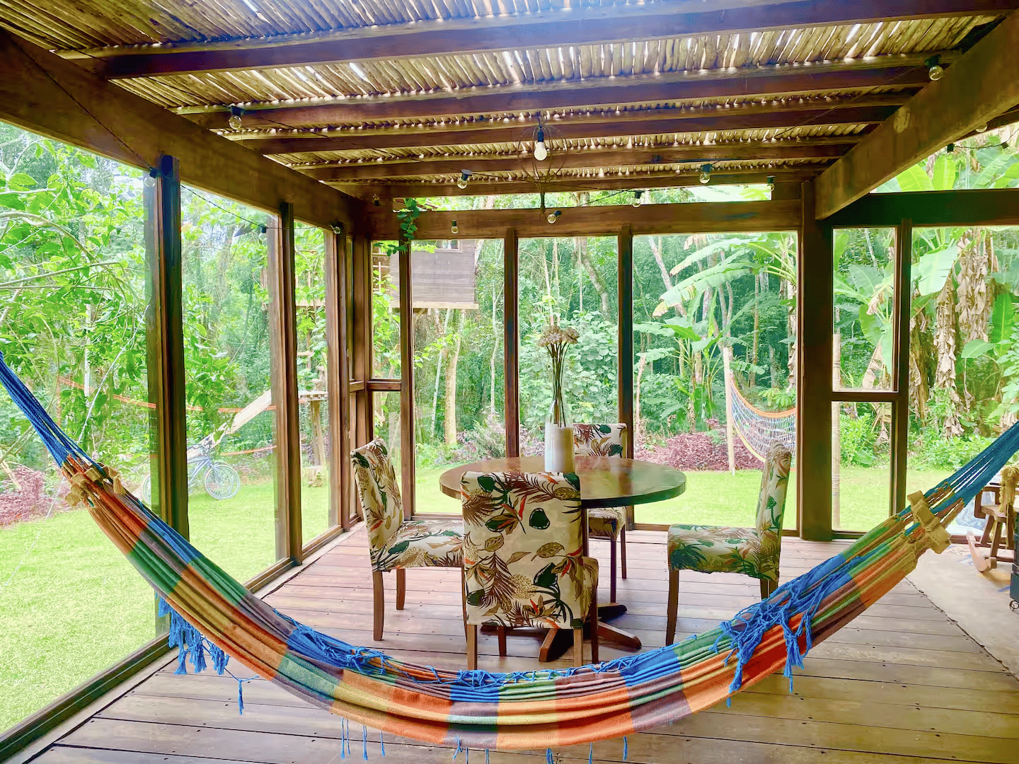 A natureza faz parte do dia a dia: o canto dos pássaros, borboletas coloridas, macaquinhos brincando entre os galhos e saruês visitando ao anoitecer. Um cenário perfeito para quem busca tranquilidade, conforto e exclusividade.